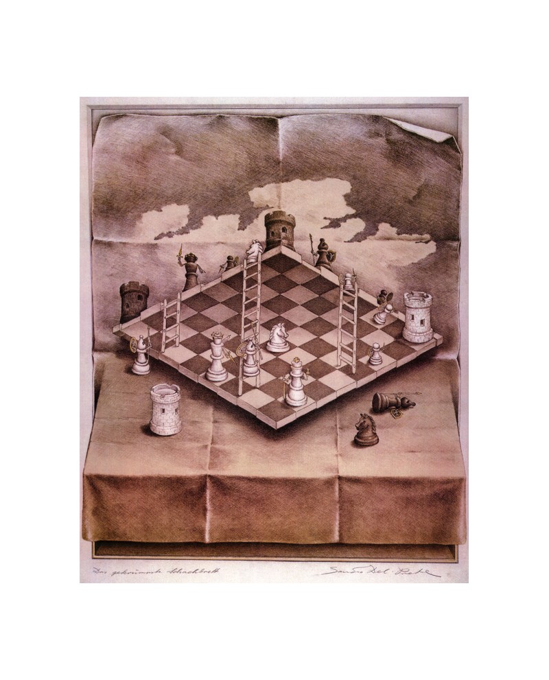 Escher - ajedrez en perspectiva imposible - Cuadro Reproduccion