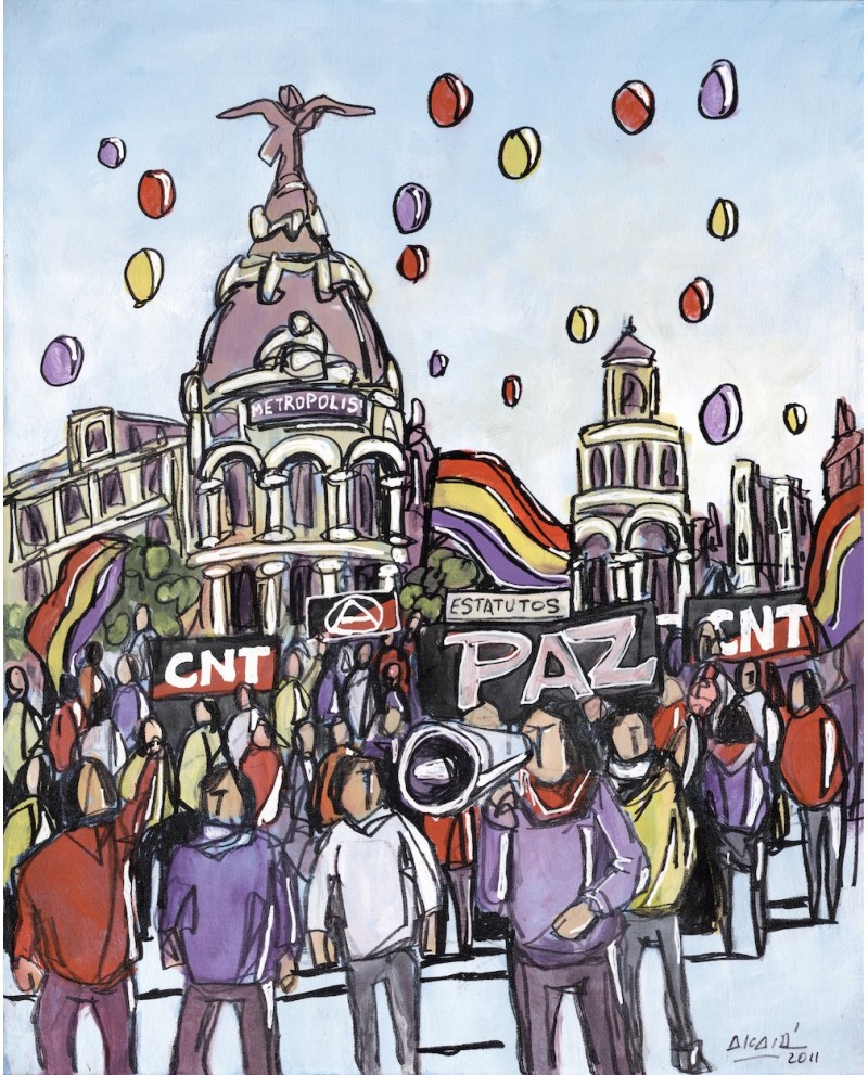 Alcala: Republicanos en Gran Via. Madrid de fiesta. Cuadro Comic Moderno