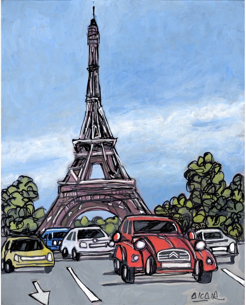 Jose Alcala: Paris y Citroen 2 CV. Cuadro de Comic Urbano Moderno
